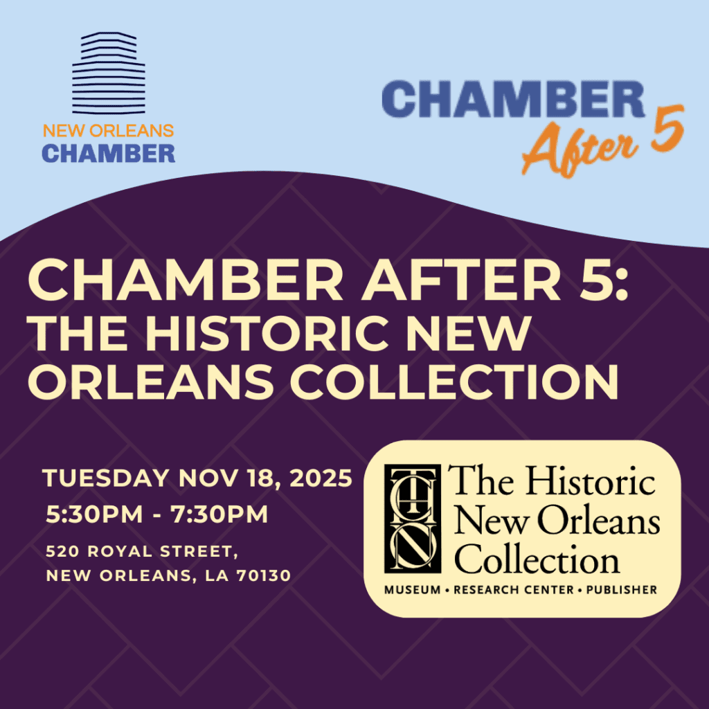 We’re excited to attend the New Orleans Chamber of Commerce Chamber After 5 at The Historic New Orleans Collection! This evening networking event was designed to bring together up to 400 professionals from a wide range of industries for high-quality, strategic networking in a relaxed environment.