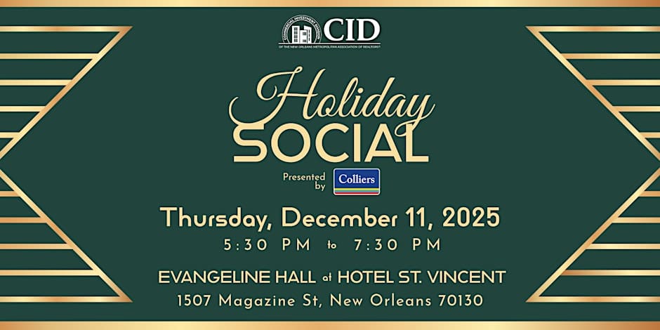 Join us as we celebrate the season at the Hotel St. Vincent. Guests will enjoy a premium open bar and heavy hors d’oeuvres throughout the evening. The event will also include the announcement of the winners of the CID Scholarship.