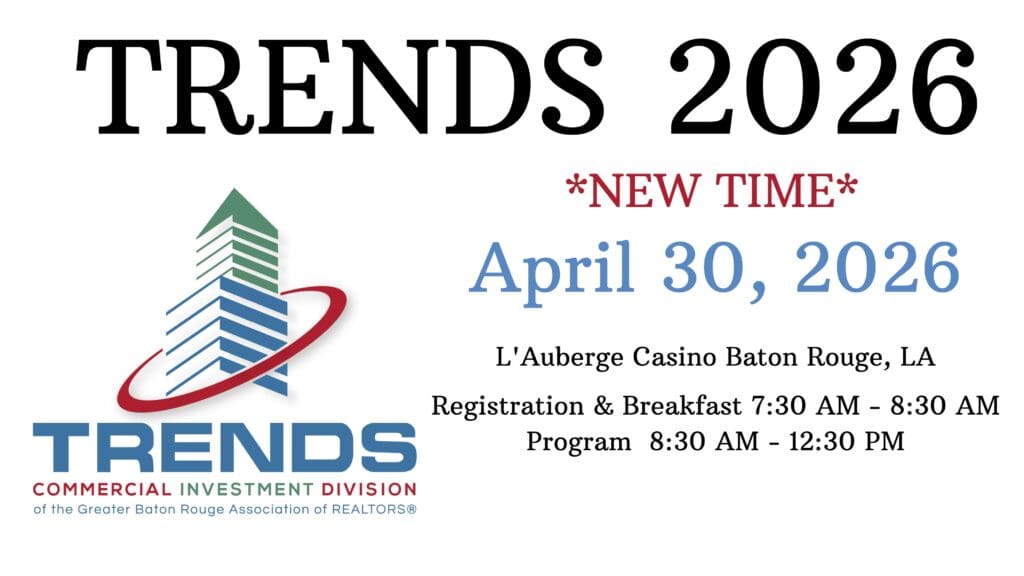 Seminar fees ($60) include a digital copy of the New Orleans & Northshore Regions Real Estate Market Analysis (Volume 58) – a comprehensive look at the regions’ economy and real estate market trends.